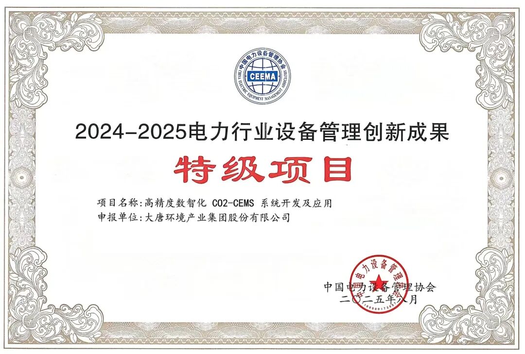 大唐環(huán)境又一研發(fā)成果榮獲2024-2025電力行業(yè)設(shè)備管理創(chuàng)新成果特等獎