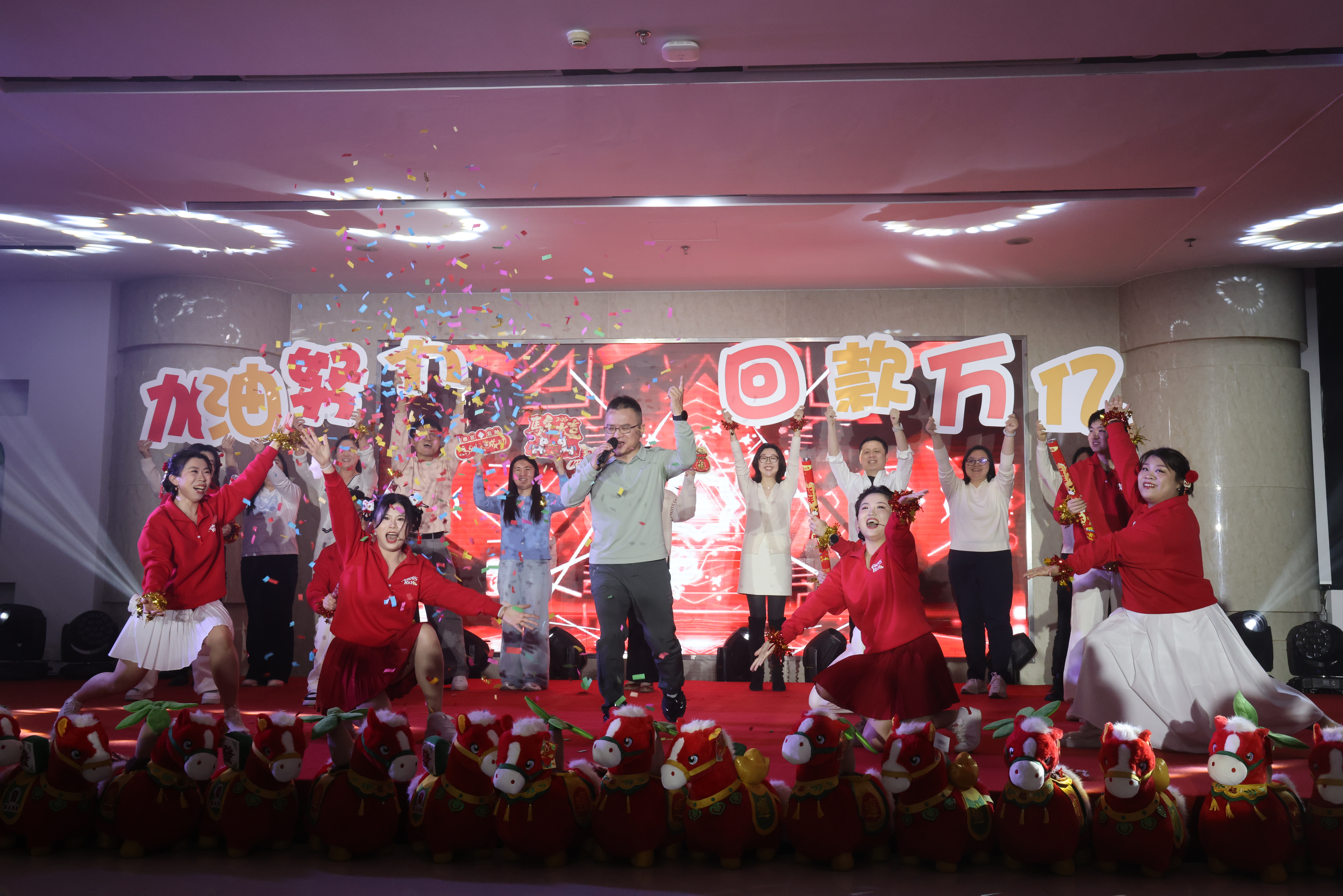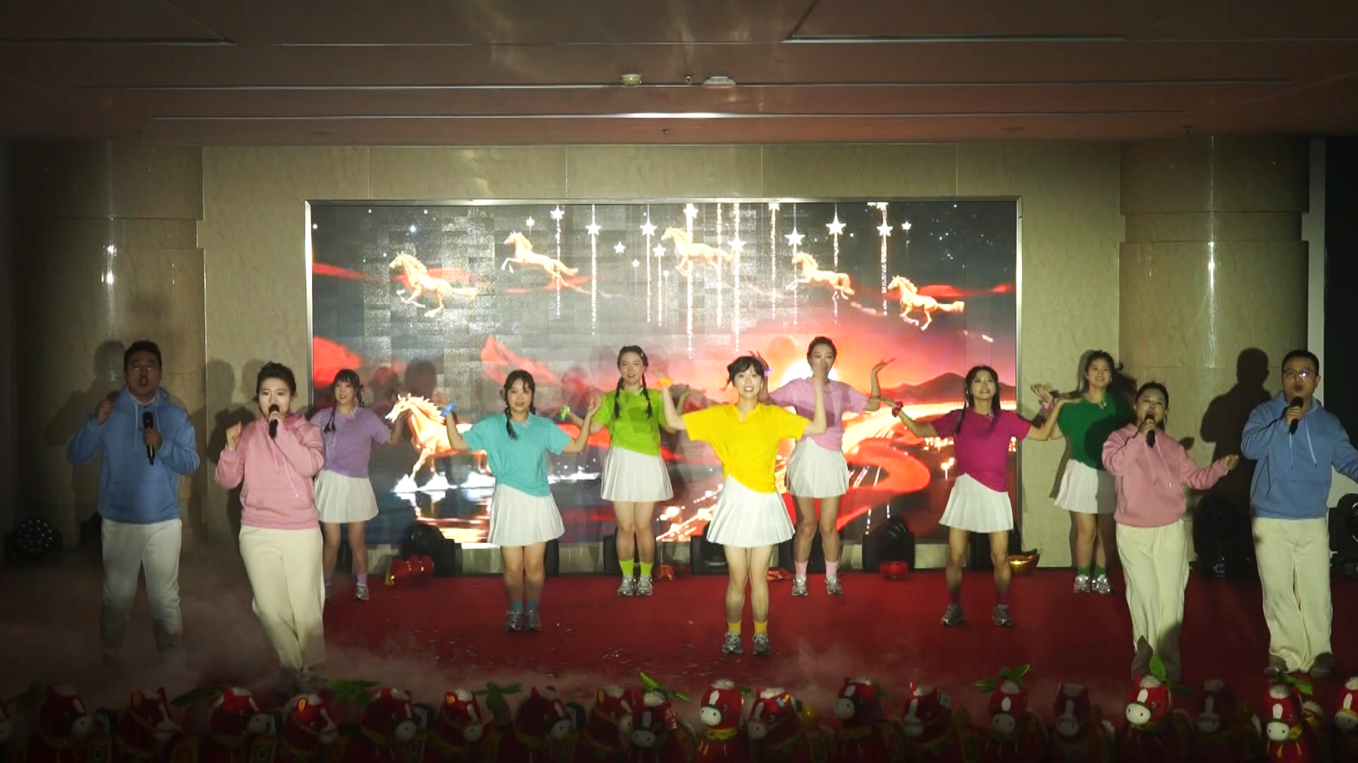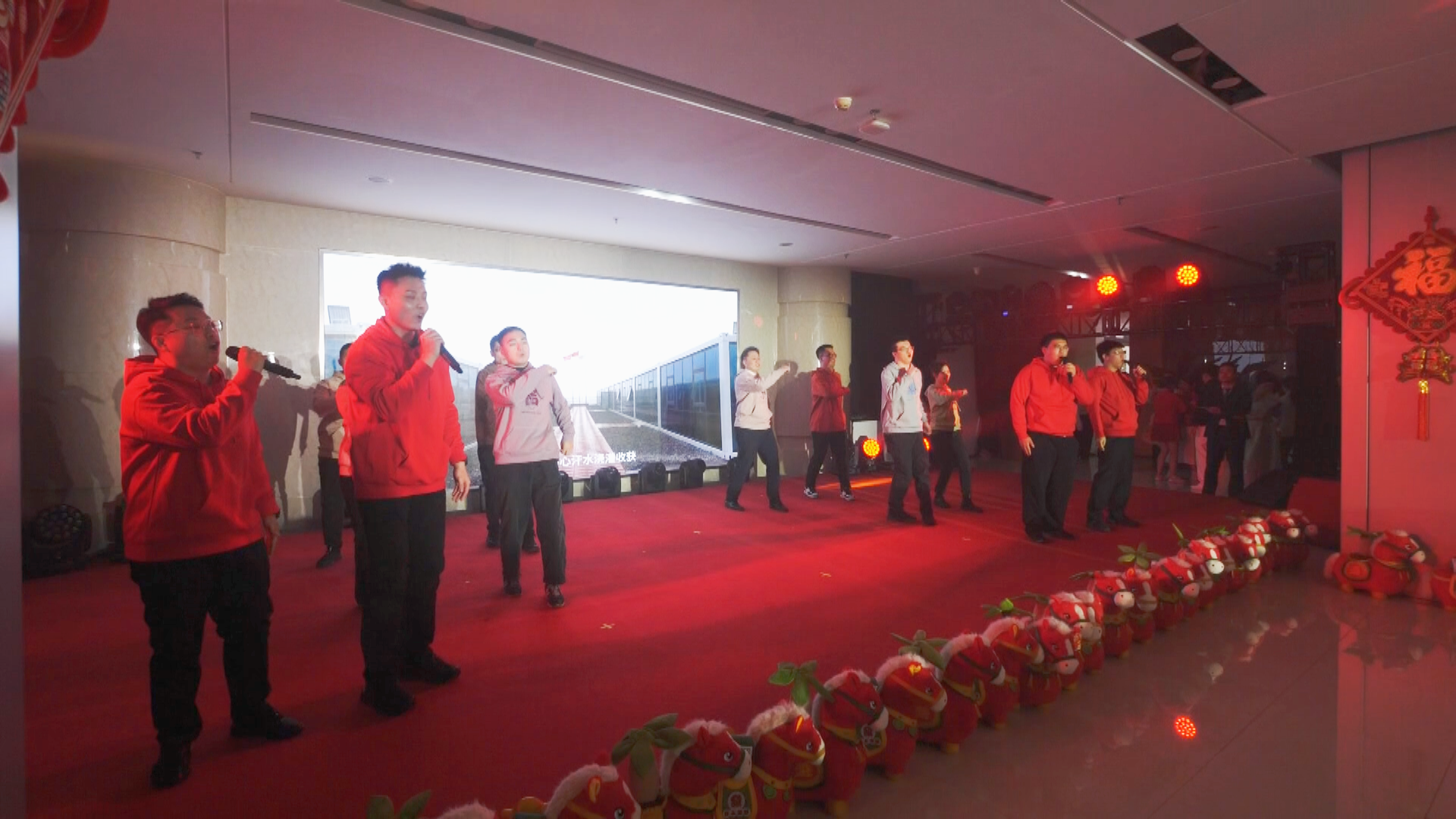 演出在特許經(jīng)營(yíng)分公司磅礴大氣的歌伴舞《萬(wàn)馬奔騰》中達(dá)到高潮,奔騰的舞姿與激昂的歌聲,寓意著大唐環(huán)境人在新一年里必將以一往無(wú)前的氣勢(shì)踏浪前行。最后,全體演職人員共同唱響《好運(yùn)來(lái)》,將最真摯、最吉祥的新春祝福送給每一位奮斗者和他們身后的家庭,祝愿大唐環(huán)境事業(yè)龍馬精神、蒸蒸日上。
