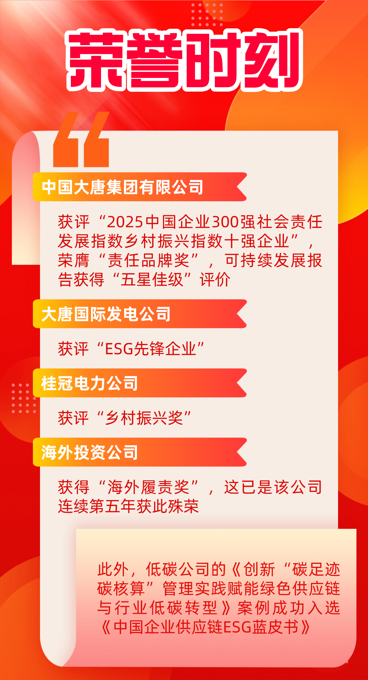 在本屆責(zé)任展上,中國大唐憑借在社會(huì)責(zé)任與ESG領(lǐng)域的全面深耕,獲得了多項(xiàng)認(rèn)可。