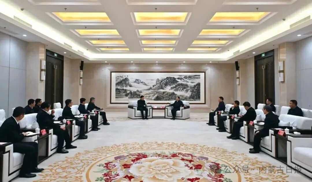 內(nèi)蒙古自治區(qū)黨委常委、秘書(shū)長(zhǎng)于立新,中國(guó)大唐黨組成員、副總經(jīng)理李建偉、李霄飛參加會(huì)談。