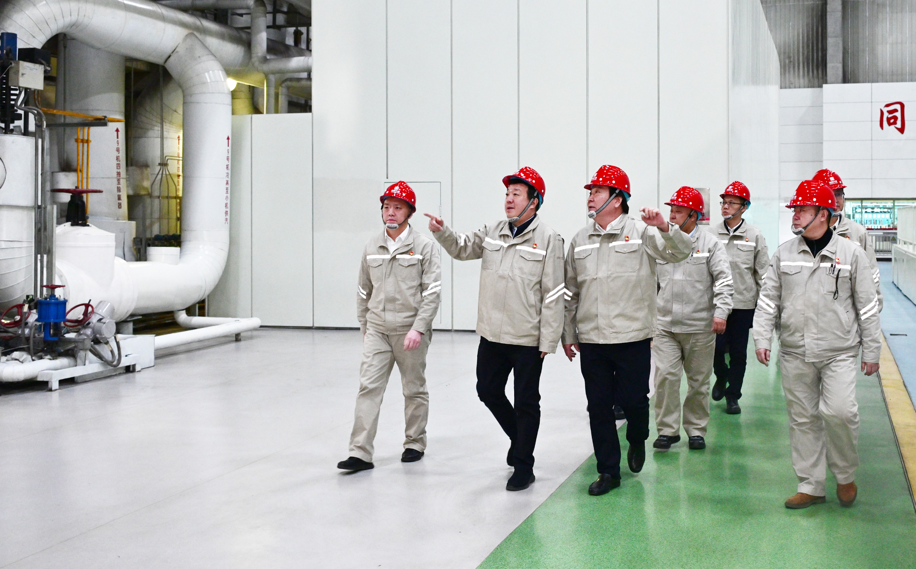 呂軍先后來到托克托發(fā)電公司廠展室、智慧能源中央控制中心、五期生產(chǎn)現(xiàn)場、智慧燃料管控中心,詳細(xì)了解企業(yè)發(fā)展歷程、綠色轉(zhuǎn)型、經(jīng)營管理、保暖保供、安全生產(chǎn)等情況,并與一線職工親切交談。