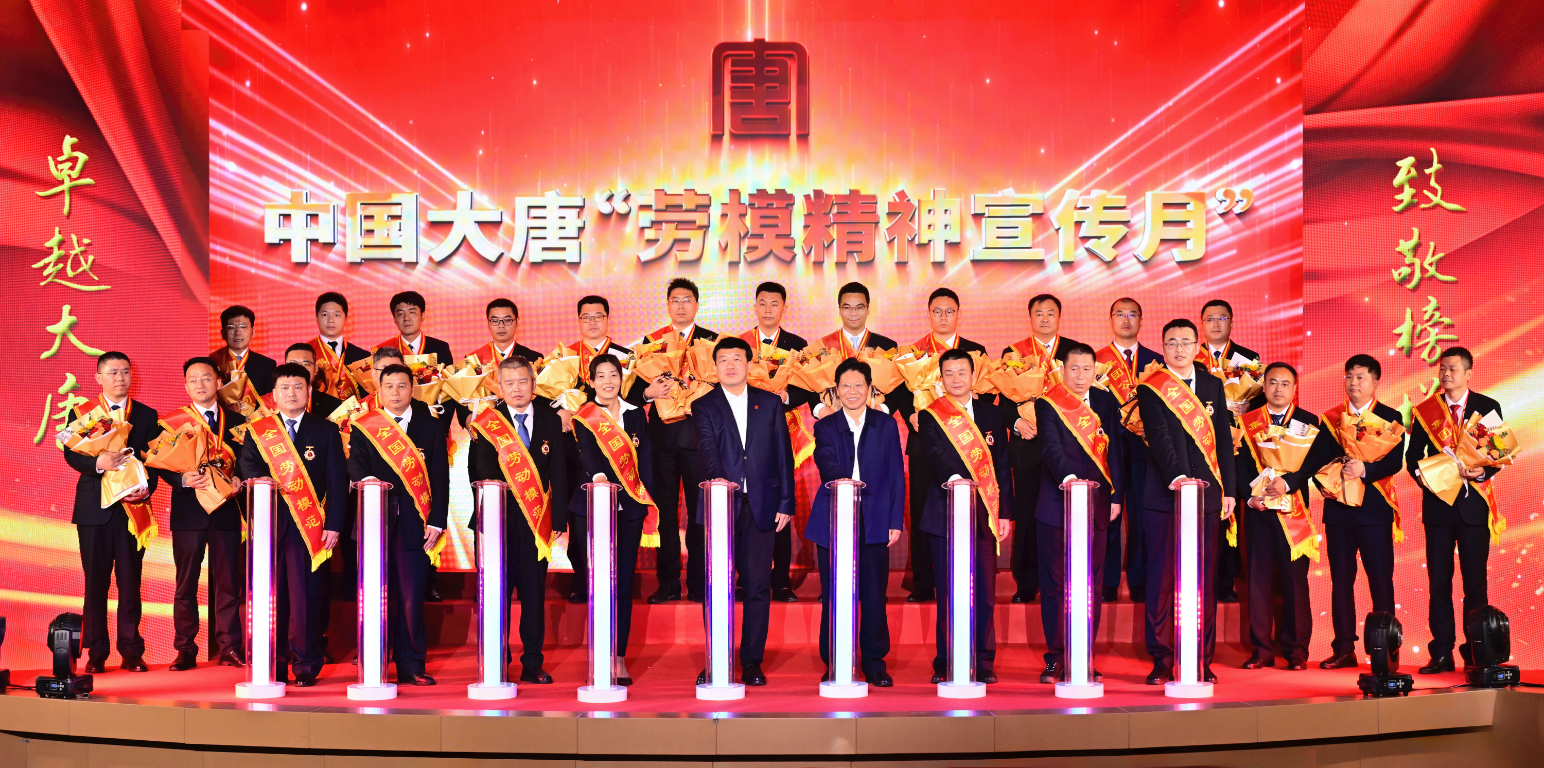 伴隨著歌曲《咱們工人有力量》,蔡毅德、呂軍與7位全國(guó)勞模共同啟動(dòng)集團(tuán)公司2025年“勞模精神宣傳月”。