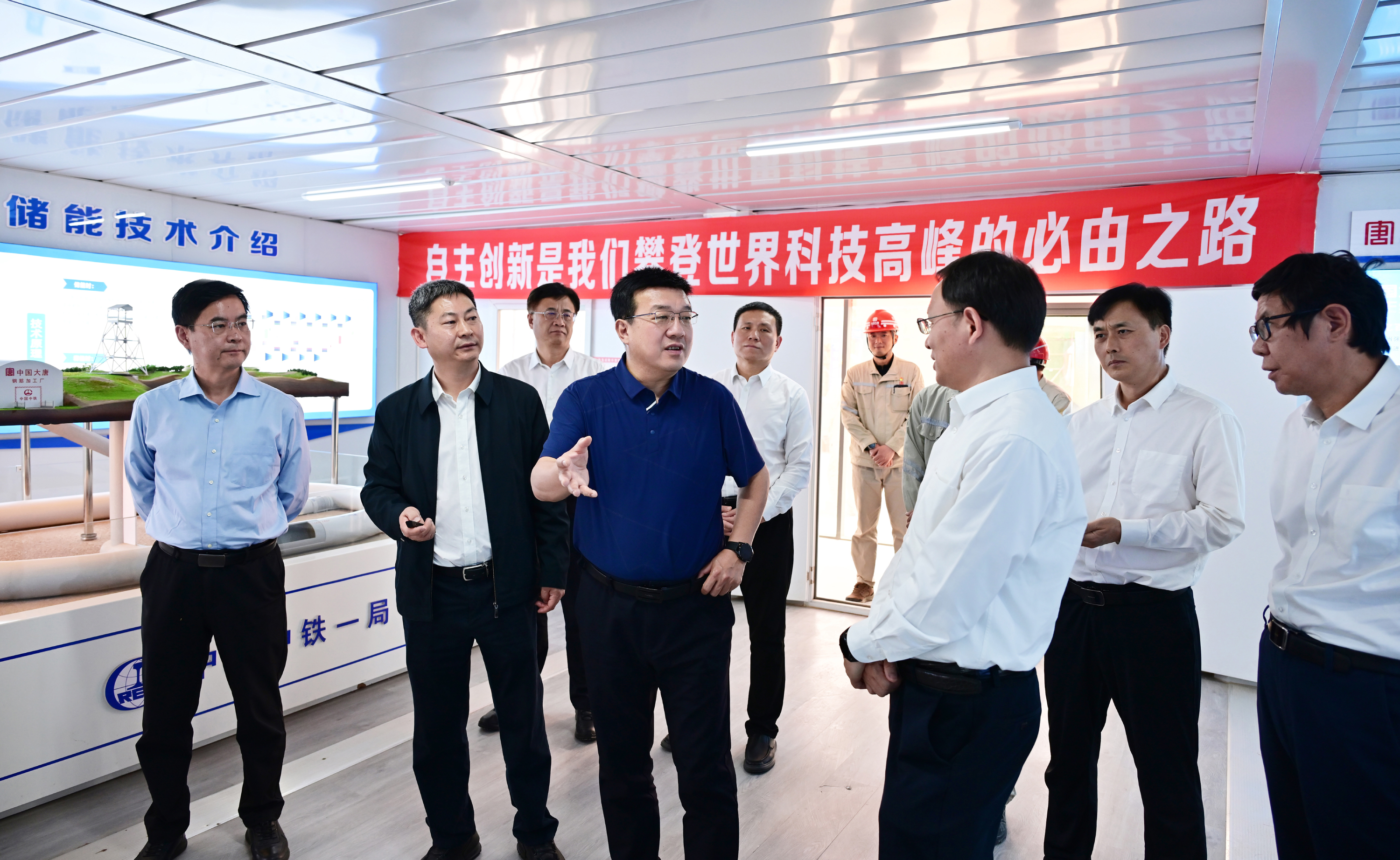 呂軍一行首先來到大唐寧夏中寧國際首套百兆瓦級全人工地下儲氣庫壓縮空氣儲能項目建設現(xiàn)場,深入項目主廠房、信息化調度中心以及地下儲氣庫硐口,聽取項目介紹,詳細了解壓縮空氣儲能技術、施工進度、技術創(chuàng)新等情況。