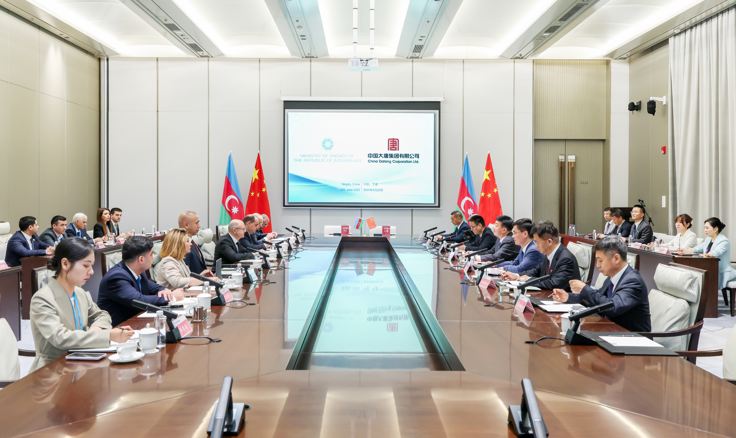 會談后,阿塞拜疆能源部與中國大唐海外投資有限公司簽署了有關(guān)綠色能源項目諒解合作備忘錄,并舉行了阿塞拜疆能源電力骨干培訓開班式。