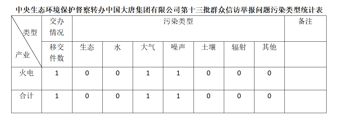 2025年6月19日,中央第七生態(tài)環(huán)境保護(hù)督察組向中國(guó)大唐集團(tuán)有限公司移交第十三批群眾信訪舉報(bào)件,共計(jì)1件,為來電舉報(bào),涉及大氣問題1個(gè)、噪聲問題1個(gè)。所有舉報(bào)件辦理工作已第一時(shí)間進(jìn)入調(diào)查核實(shí)辦理程序,辦理情況將按照相關(guān)要求反饋督察組,并及時(shí)向社會(huì)公開。