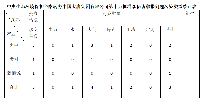中央第七生態(tài)環(huán)境保護(hù)督察組向中國(guó)大唐集團(tuán)有限公司轉(zhuǎn)辦第十五批群眾信訪(fǎng)舉報(bào)件