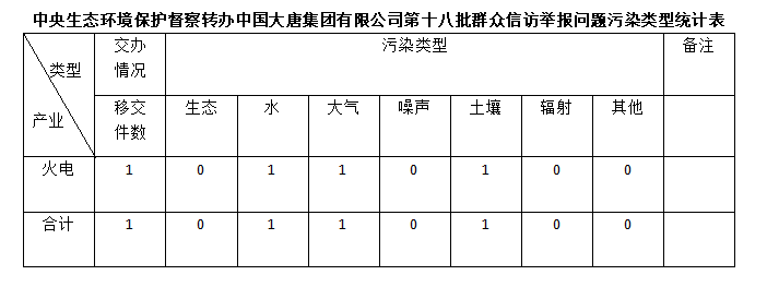 中央第七生態(tài)環(huán)境保護(hù)督察組向中國大唐集團(tuán)有限公司轉(zhuǎn)辦第十八批群眾信訪舉報(bào)件