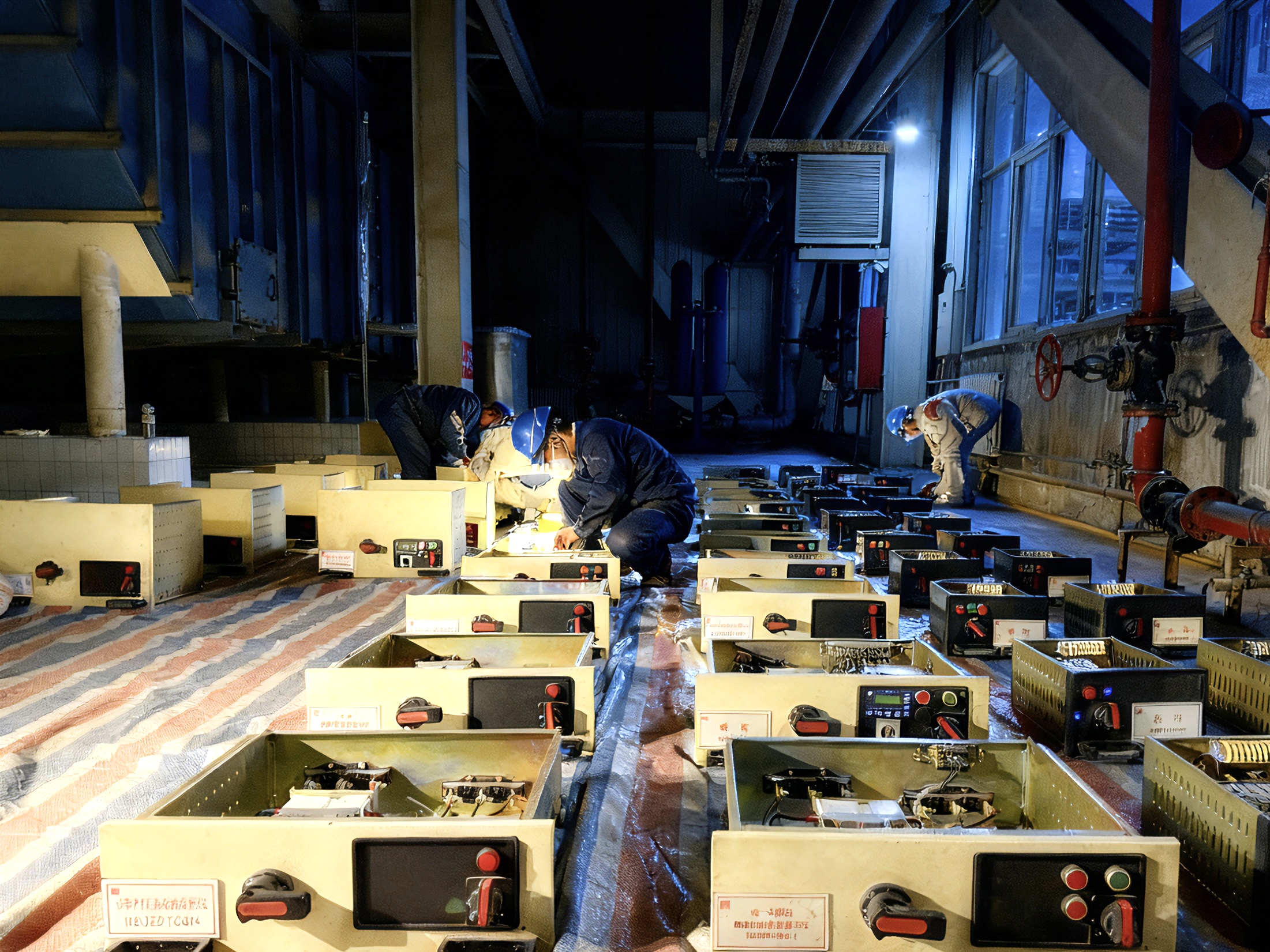 打開MCC柜門,接觸器、繼電器、斷路器與密集的二次線路呈現(xiàn)眼前。檢修人員手持工具與電筒,如外科醫(yī)生般專注細(xì)致:緊固每一處端子,清除每一粒積灰,測(cè)試每一個(gè)元件?,F(xiàn)場(chǎng)唯有工具輕響與沉穩(wěn)的呼吸聲,映襯著他們專注的身影。