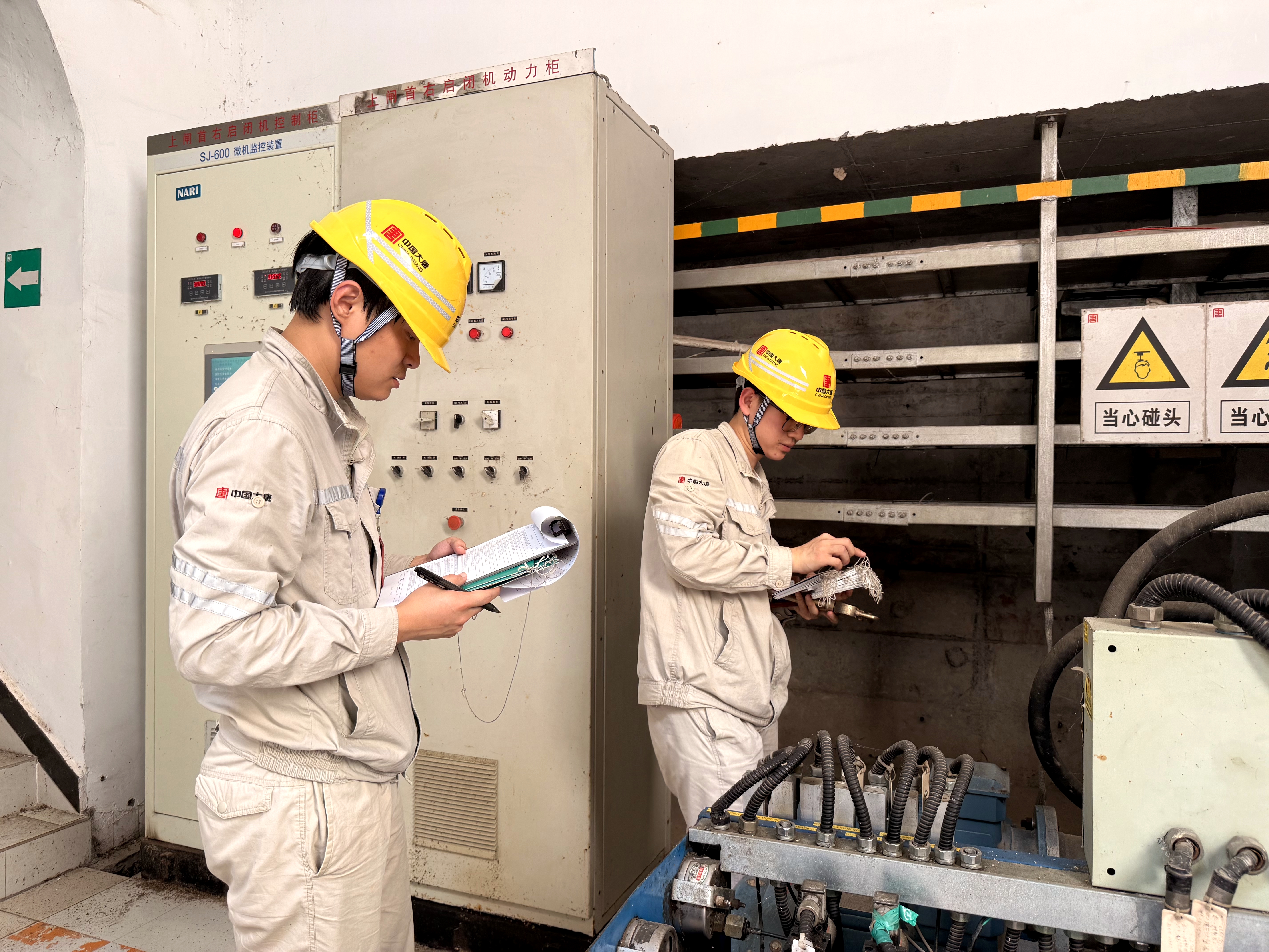 掛完牌,兩人不敢有絲毫松懈,嚴格按照規(guī)程進行“雙確認”。當啟閉室最后一塊小鐵牌被穩(wěn)穩(wěn)掛在某個犄角旮旯的管壁上時,他們的工服早已被汗水徹底浸透,緊貼在皮膚上,仿佛剛從水里撈出。