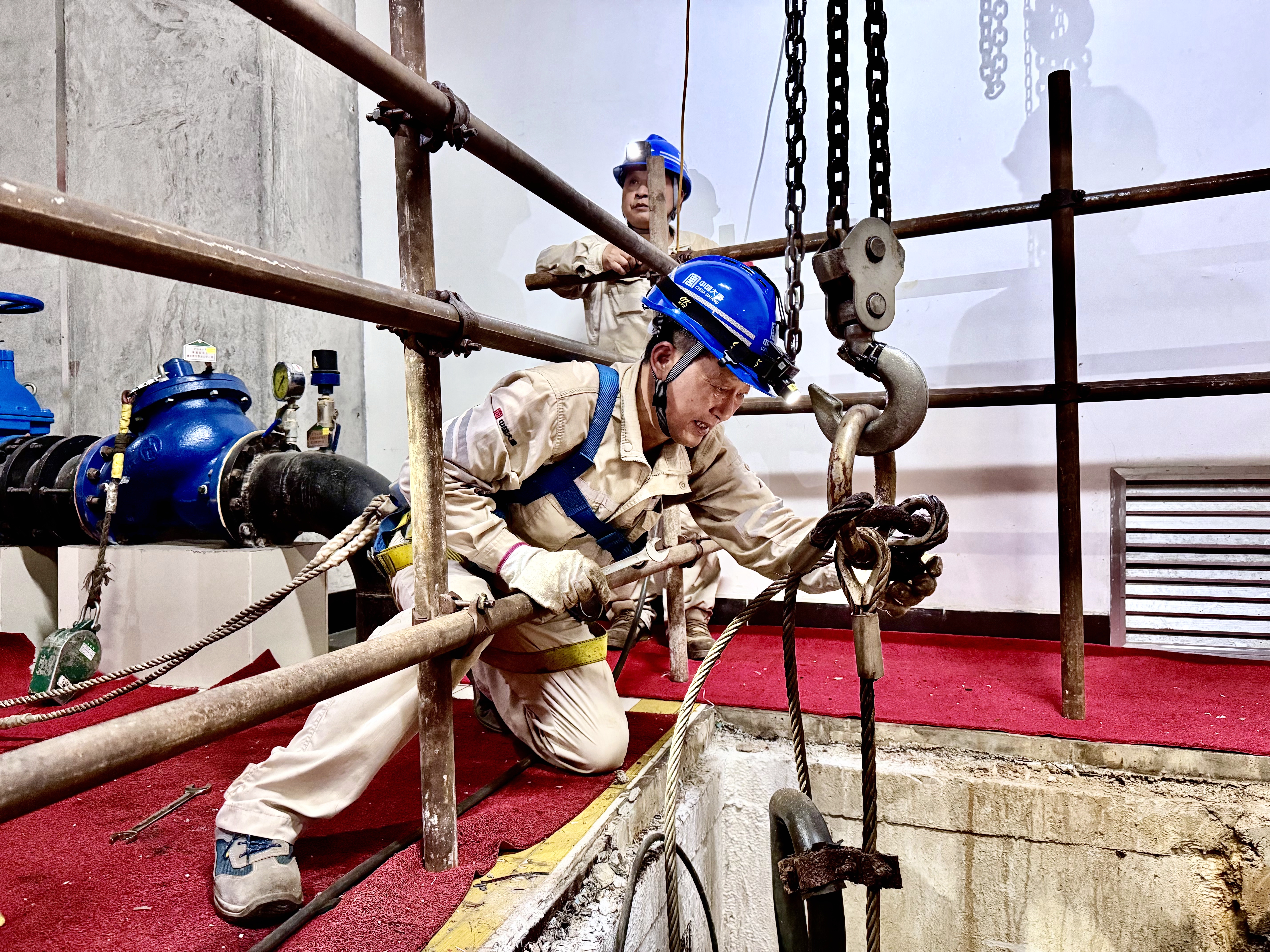 8月4日,彭水水電站廠房EL213.9層悶熱如倒扣的鐵皮蒸籠,悶熱的空氣仿佛凝固成膠水,黏在每一寸裸露的皮膚上。在重慶彭水水電公司5號機組滲漏集水井井口邊緣,七八頂安全帽在蒸騰的熱氣里微微晃動,仿佛幾片浮萍,在汗水匯成的河流中載沉載浮。