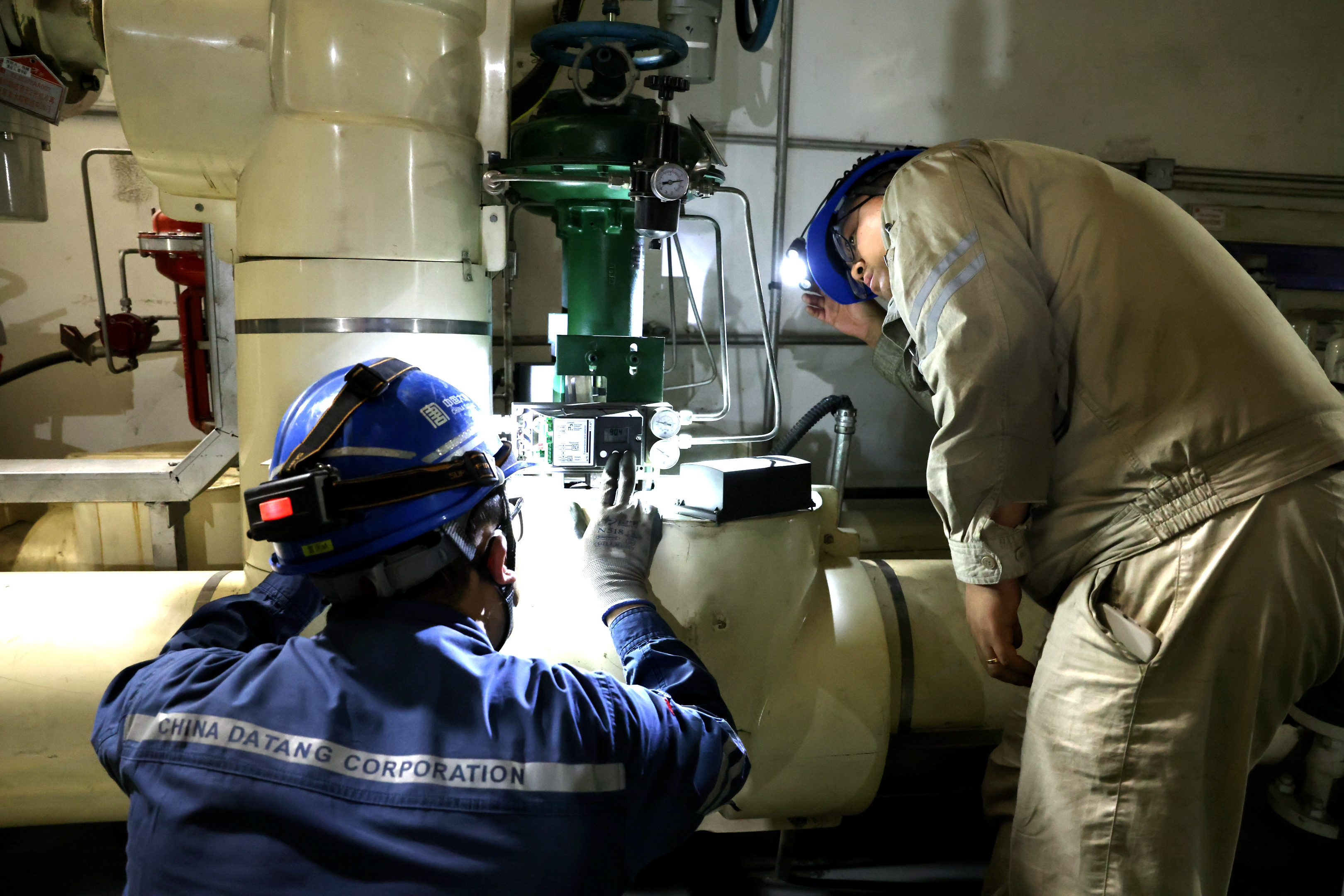 王西抓起工具包時(shí),金屬搭扣“哐當(dāng)”撞在腰間的鑰匙串上。他扯過手電筒別在工裝口袋,三步并作兩步?jīng)_向汽機(jī)房,膠底鞋踏在滾燙的水泥地上,像踩著剛出爐的鐵板。運(yùn)行人員早已拉好警戒線,嚴(yán)格做好安全措施。絕緣墊在高溫下散發(fā)著淡淡的塑膠味。