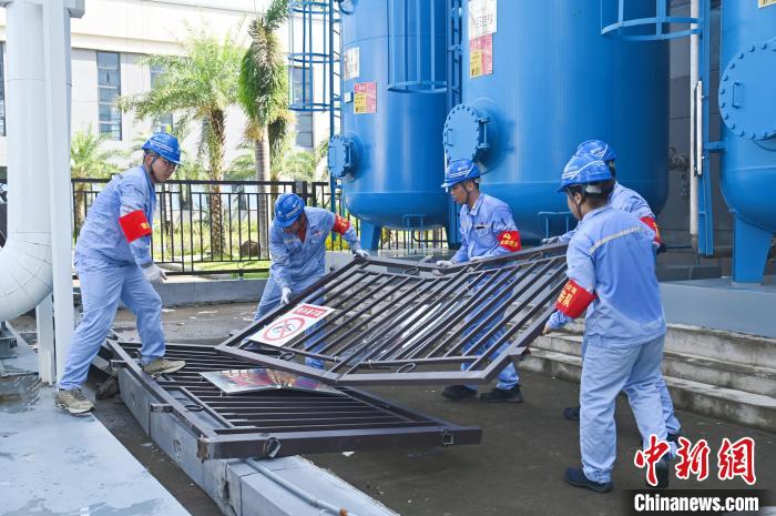 9月8日,海口,大唐??诠驹趶S區(qū)內(nèi)開展災(zāi)后設(shè)備設(shè)施修復(fù)工作 (大唐海南公司供圖)