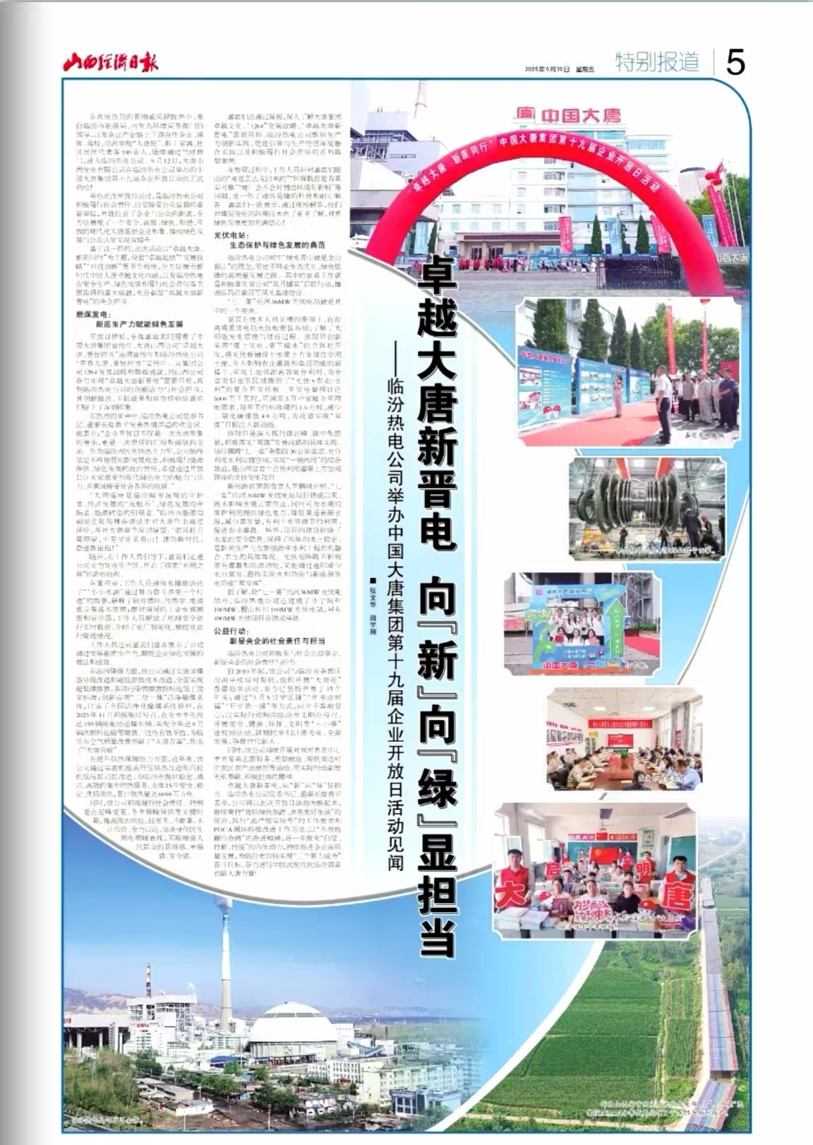 [山西經(jīng)濟(jì)日?qǐng)?bào)]2025-09-19-5卓越大唐新晉電 向新向綠顯擔(dān)當(dāng)——臨汾熱電公司舉辦中國大唐集團(tuán)第十九屆企業(yè)開放日活動(dòng)見聞