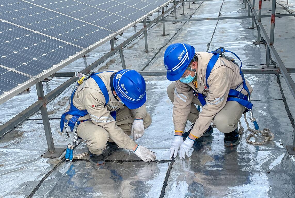 3月,新冠疫情“倒春寒”爆發(fā)。彼時,沭陽光伏屋頂防水改造工作已開展一月有余,技改工作進入關鍵時期,為趕在雨季到來之前完成9個屋頂的防水改造,唐晶、翟凱兩人主動申請駐守現場,踐行使命擔當。