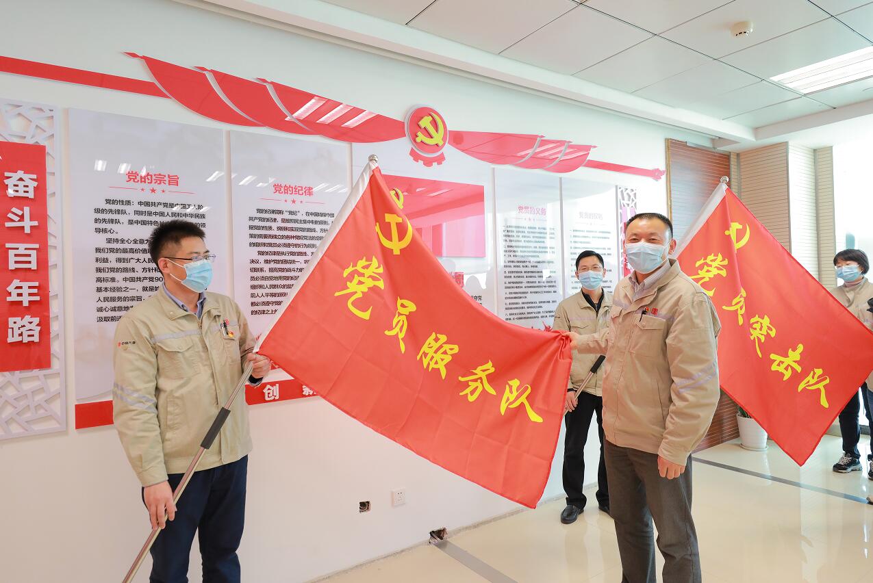 為第一黨支部黨員突擊隊、黨員服務隊授旗(林以恒/攝)